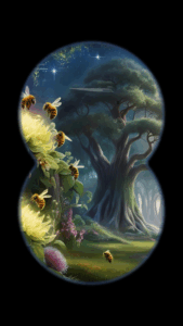 Und schon, als hätten sie nur genau auf dieses Stichwort gewartet, erhoben sich unsere drei Bienen feierlich in die Luft – flatternd, glitzernd und mit einem kollektiven Summen: Ta-ta-taaaa (das hatten sie von Shamsaré gelernt, dem ehrwürdigen Hüter des Wabenportals).